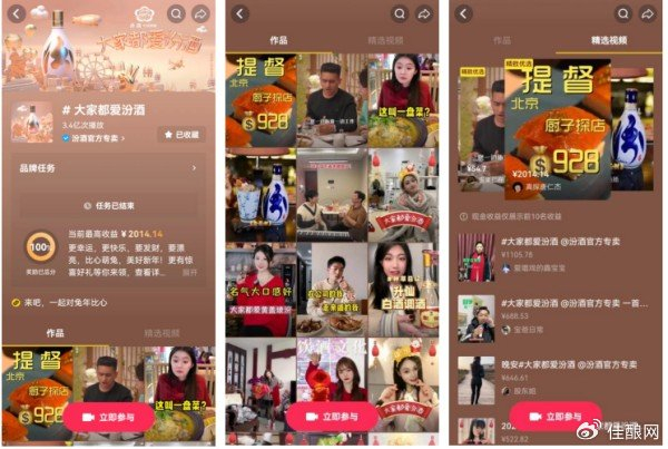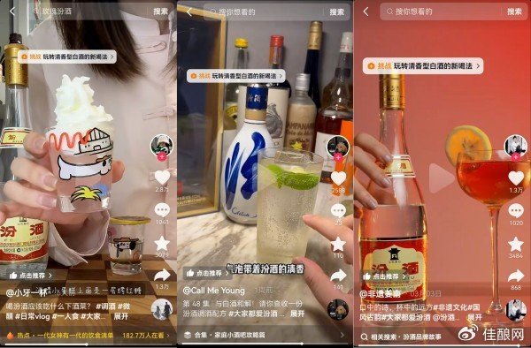 包括@嘉之派、@腊月小九、@调酒师红斌在内的一大批百万、千万粉丝大V相继参加了#大家都爱汾酒 抖音挑战赛,他们通过“汾酒+”的方式,开发出汾酒的全新喝法,吸引着年轻消费者模仿。