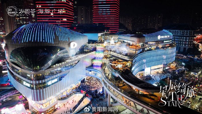 “海豚广场造型特别,很有吸引力,里面吃喝玩乐购样样俱全,还有很多贵州特产,可以‘一站式’购物。”在“花果园博央艺术国际交流中心”打完卡,刘婷婷便和同伴来到旁边的海豚广场体验真冰滑冰,花果园让她们的旅程增添了几分乐趣。