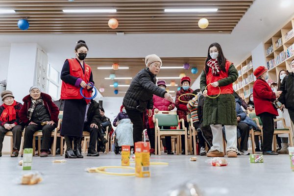 除了精彩的表演,欢乐的互动游戏同样让老人们乐在其中。在“欢乐滚滚来”游戏中,用圆滚滚的元宵道具开启趣味接力赛;在“‘丢’元宵”游戏中,元宵汤圆化身投掷神器,大家比比谁是“神射手”……游戏间,老人们笑声连连,快乐满溢。