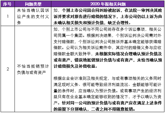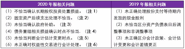 2019年报、2020年报会计监管报告中相关问题对比提示如下:
