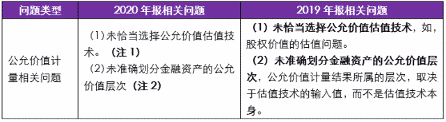 2018年会计监管报告中,未涉及公允价值计量相关问题。2019年报、2020年报会计监管报告中相关问题对比提示如下: