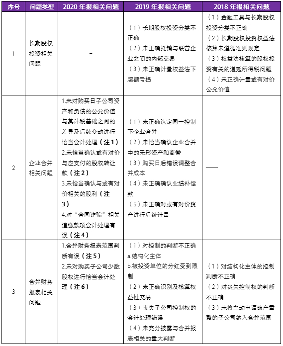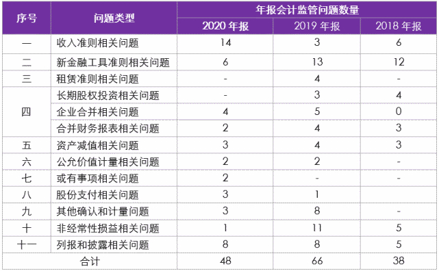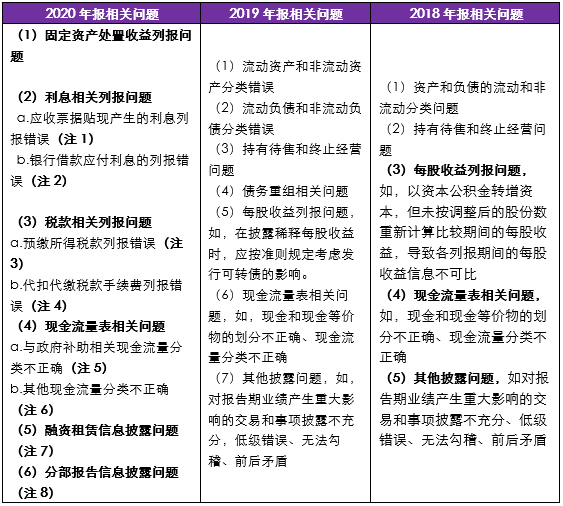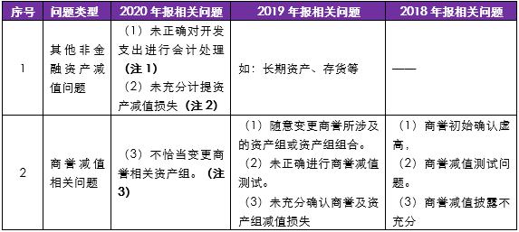 2018至2020年报会计监管报告中相关问题对比提示如下: