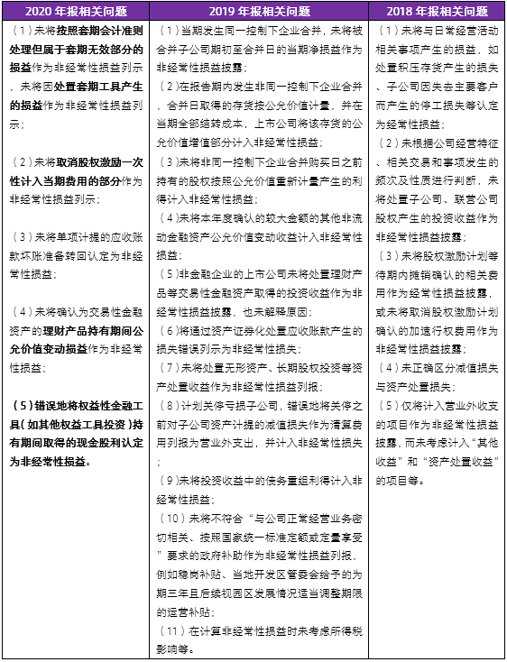根据《公开发行证券的公司信息披露解释性公告第1号——非经常性损益》,非经常性损益是指与公司正常经营业务无直接关系,以及虽与正常经营业务相关,但由于其性质特殊和偶发性,影响报表使用人对公司经营业绩和盈利能力做出正常判断的各项交易和事项产生的损益。上市公司应根据非经常性损益的定义,综合考虑相关损益同公司正常经营业务的关联程度以及可持续性,结合自身实际情况做出合理判断。2018年报至2020年报会计监管报告相关问题对比提示如下: