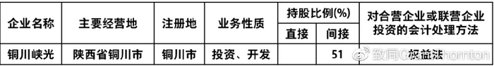 本集团对铜川峡光比例虽然高于50%,但根据公司章程,本集团行使49%的表决权,委派董事占董事会人数未过半,高管任命无决定权,不参与被投资方生产经营,故对铜川峡光不具有控制权,不纳入合并范围。