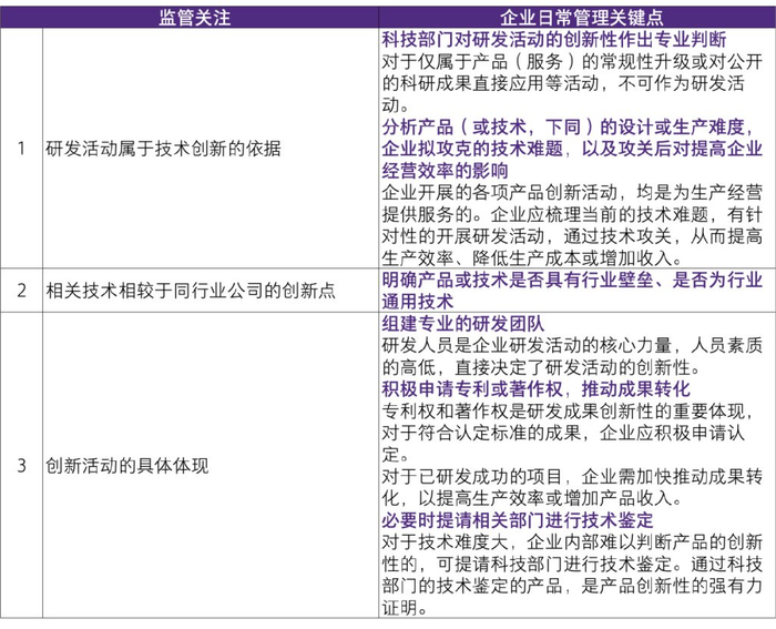 上述问询示例可以看出,研发活动的创新性亦是监管机构审核要点。我们结合《研发费加计2.0版》中有关研发活动判定的要点及内涵,对企业应如何体现研发活动的创新性进行了简要概括: