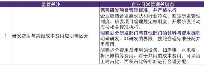 本文将针对上述监管机构四类关注重点,梳理企业日常研发活动管理的关键点,以期为拟IPO企业及其他企业的研发投入列报、享受研发费加计扣除税收优惠等提供合规性参考。