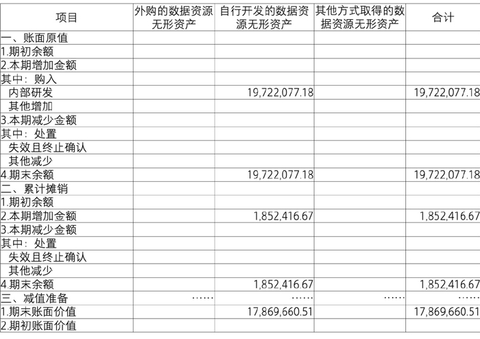期末本公司无外购的数据资源无形资产及其他方式取得的数据资源无形资产。