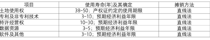 2. 使用寿命有限的无形资产,在使用寿命内按照与该项无形资产有关的经济利益的预期实现方式系统合理地摊销,无法可靠确定预期实现方式的,采用直线法摊销。具体年限如下: