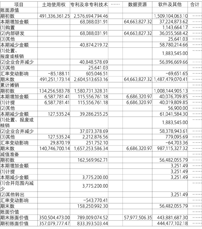 1.无形资产包括土地使用权、专利及非专利技术、特许经营权、商标权、数据资源、软件及其他等按成本进行初始计量。
