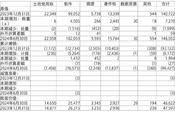 于2024年6月30日,本集团无形资产账面价值中无借款费用资本化金额,无用于抵押和担保的无形资产。