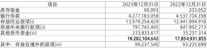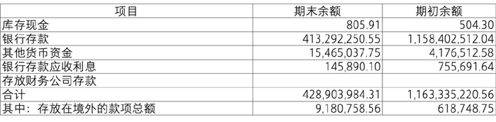 (iv) 于 2023 年 12 月 31 日,存放在境外的款项系本公司之子公司香港公司、澳门公司和越南公司分别存放在中国香港、中国澳门和越南的库存现金和银行存款及其应收利息。存放在境外的款项不存在汇回限制。