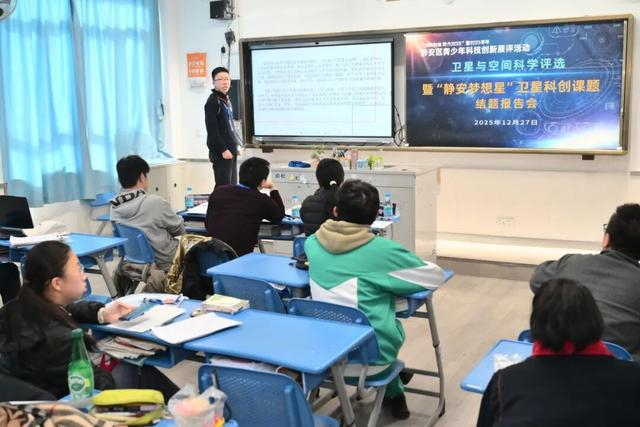 与展评活动同步举行的静安梦想星卫星科创课题结题报告会,成为青少年科技创新成果的重要展示窗口。在精心布置的报告会现场,每一位参与课题研究的同学都怀揣对科学的热爱与追求,满怀信心地向与会专家详细介绍研究课题。他们通过生动的PPT展示、精炼的口头阐述,将研究过程、实验数据、创新点以及遇到的挑战和解决方法一一呈现,充分展现了青少年在科技创新道路上的探索精神和实践能力。此次结题不仅标志着同学们在卫星与空间科创领域迈出坚实一步,更作为青少年科技创新的璀璨成果,精彩亮相展评活动。