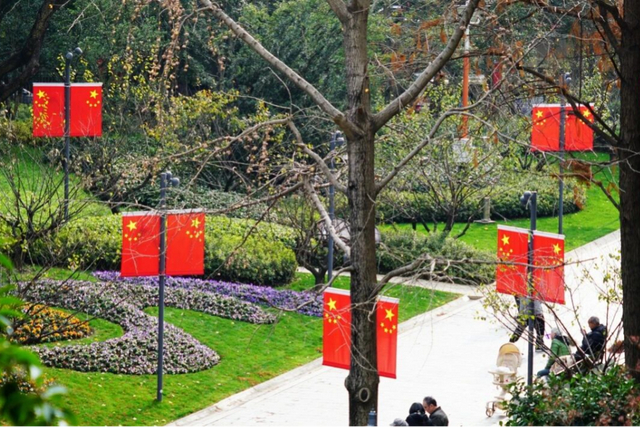 静安区各公园也纷纷梳妆迎新。园内鲜艳的国旗、巧思设置的节日装置,与葱郁的树木交织成一幅幅生动画卷,诚邀市民在元旦假期入园漫步,在自然与人文交融的气息中,感受新的一年徐徐铺展的生机。