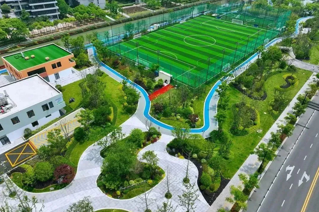 一期项目于2023年5月正式开放,内设健身步道、标准足球场及五人制足球场,并融入了高清智能摄录系统、AR互动骑行等科技设施,打造智慧化运动体验空间。