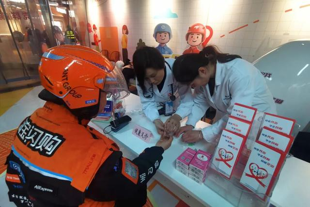 街道志愿者们免费为大家提供血糖、血压测试;