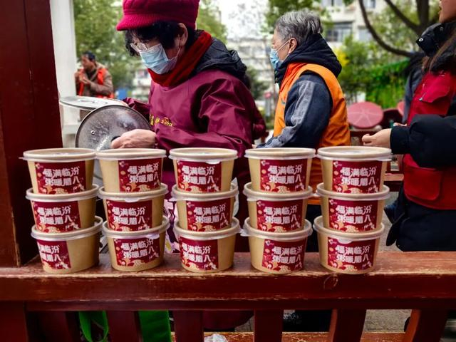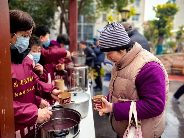 阳曲路760弄居民区开展“齐乐邻里情 腊八暖民心”暖心活动,共建单位联动,党员先锋带头,“临妈妈”“临姐姐”“临灵灵”等30位志愿者一大早齐聚连心廊,将冒着热气的粥品整齐摆放,等候居民领取,活动现场暖意融融。