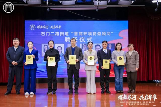 此次活动通过“聘顾问、树标杆”双向发力,凝聚起政企协同、多方参与的发展合力。聘任12位营商环境特邀顾问,包括涵盖金融、科技、法律、商协会等领域的行业翘楚与商界精英,依托其丰富经验、广阔视野与深厚资源,为街道招商策略、政策优化、资源链接把脉定向,为营商环境精筑优塑注入智慧动能。