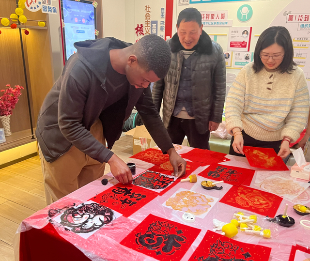身旁的工作人员耐心地向他演示,并笑着解释:“马上就是我们中国最重要的节日——春节了,就像你们也有重要的节日一样,是全家团圆的日子。”