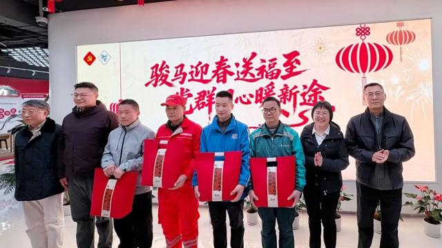 与会领导向快递员、环卫工人等代表赠送了饱含心意的新春慰问礼包,把党组织的关爱和温暖送到他们身边,不断提升新就业群体的归属感、成就感和幸福感,凝聚共建共享合力。