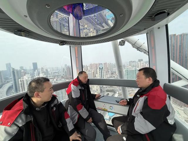 饭后,一份特别的“惊喜体验”在等着他们——在街道工作人员的陪伴下,大家登上了静安大悦城标志性的“天空指环”摩天轮。随着车厢缓缓升高,城市美景在脚下铺展,平日匆忙穿梭于街巷的守护者们,此刻得以放松俯瞰这座他们日夜守护的城区。