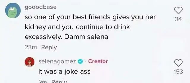 就在粉丝忙着为赛琳娜解释的时候,赛琳娜亲自现身回了一句,语出惊人: