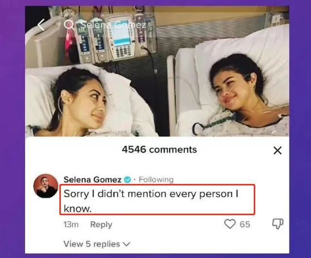 有网友透露,当年配型结果出来之后,医生非法操作,第一时间先告诉了赛琳娜检测结果(按正规流程应该先通知捐献者,而非受捐者),