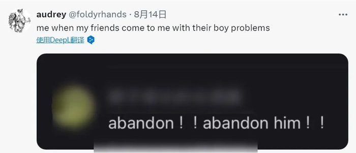 “abandon在中国互联网上是个梗,每次有人发英语相关的帖子,评论区都会出现这个词。不过最搞笑的是,在这次的评论中,abandon的意思还真成立了。”