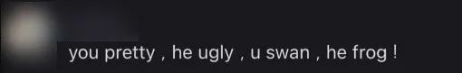 “你长得漂亮,他长得丑,你是天鹅,他是蛤蟆。”