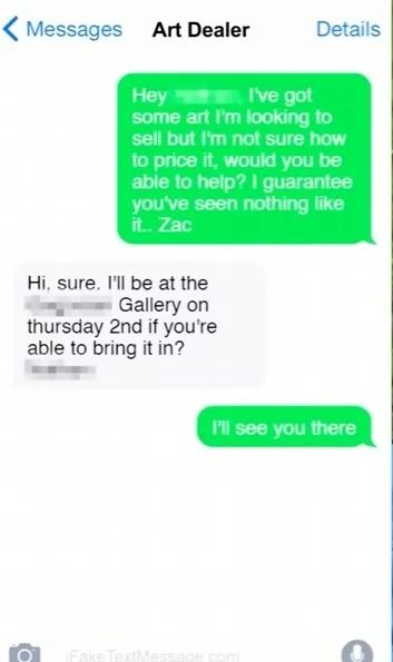 更尴尬的是,Zac联系的一位艺术中介回复了他,说对他的艺术品感兴趣,愿意亲自看一看,Zac不愿放过机会,连时间地点都定好了。