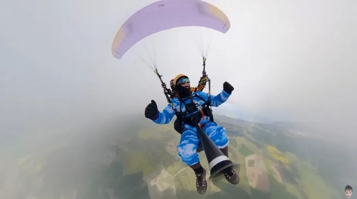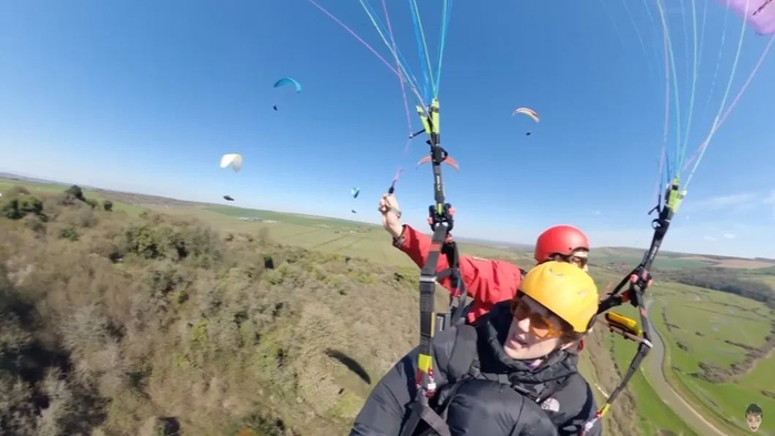 在起飞的瞬间,Zac就感觉到二人迅速抬升,风力正合适。