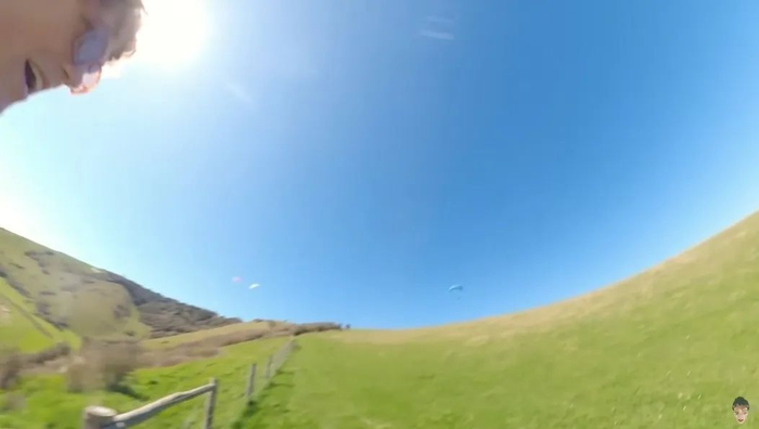 收拾好滑翔伞,二人又结伴走回了出发的山坡,累得Zac够呛,而等真正爬上去,Zac更欲哭无泪了: