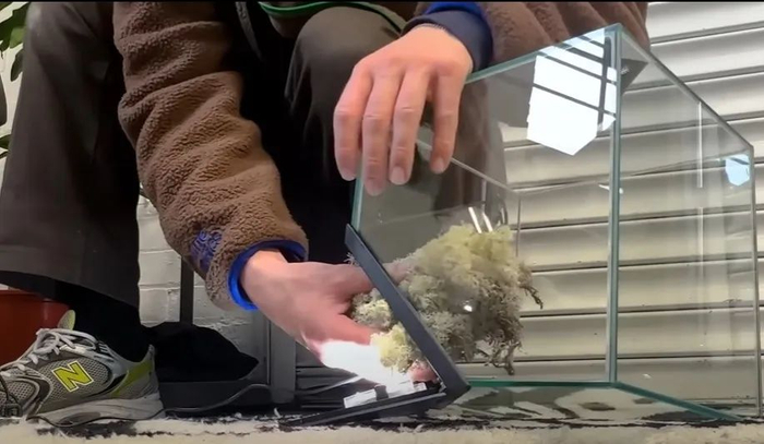 就这样,Zac找了点苔藓把加湿器裹了起来,然后把它塞进了鱼缸里,