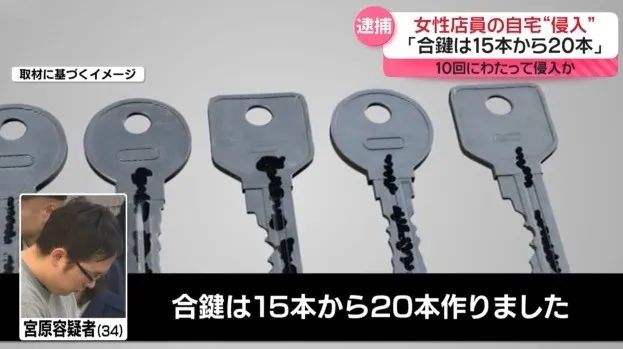警方对宫原凉太的家进行搜查后,从他的包包里找到了5把备用钥匙。