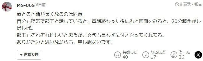 (截图来自日本网友评论)“随着年龄的增长,话会变多,我认同这一点。