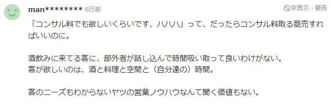 “你还年轻,可能不懂,但像我这样成功人士的免费演讲,真的很难得。在这种街角居酒屋里,能听到那些平时要花几十万日元才能听到的培训师的教诲,大家都会很高兴吧。如果可以的话,我甚至愿意亲自培训员工。”