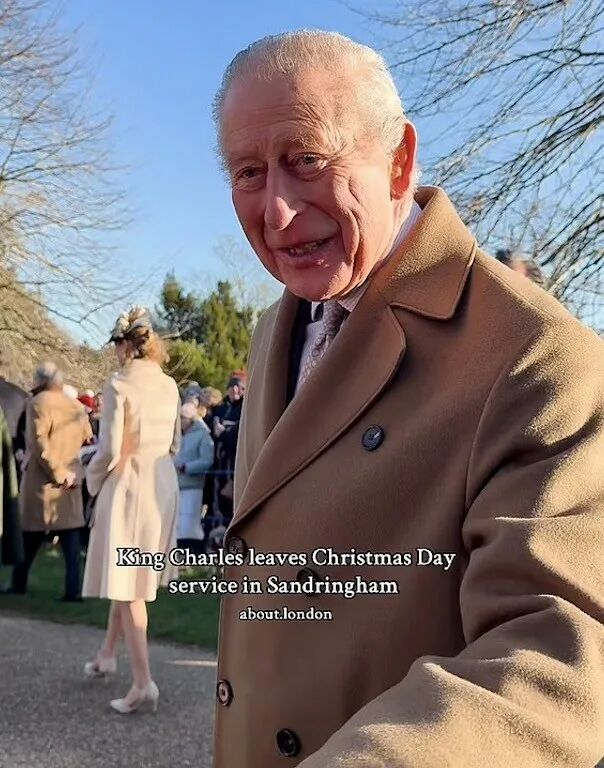12月25日的圣诞节,英国王室成员在桑德林姆庄园(Sandringham Estate)参加完一年一度的传统教堂礼拜后,集体步行出来,向聚集在外面的民众致意问候。