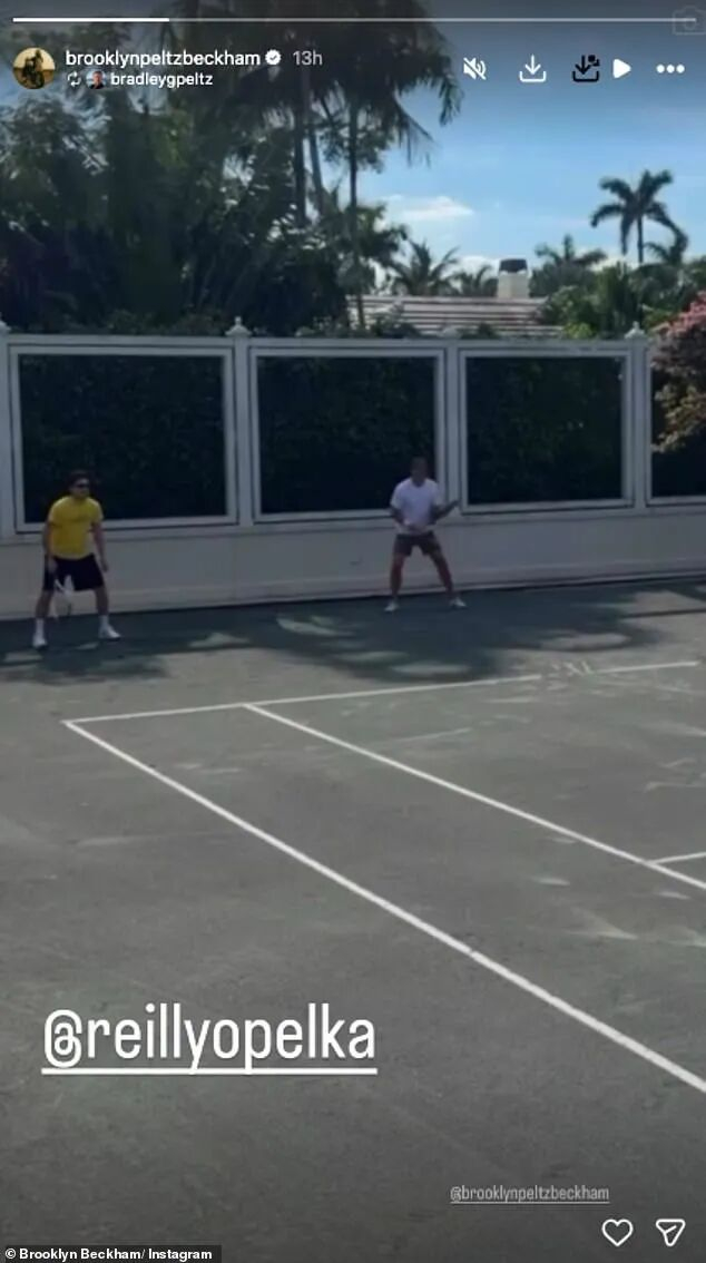 美国那头,布鲁克林在阳光下打网球、陪着岳父岳母、牵着“我的一切”。