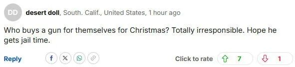 “谁会给自己买枪当圣诞礼物?太不负责任了。希望他坐牢。”