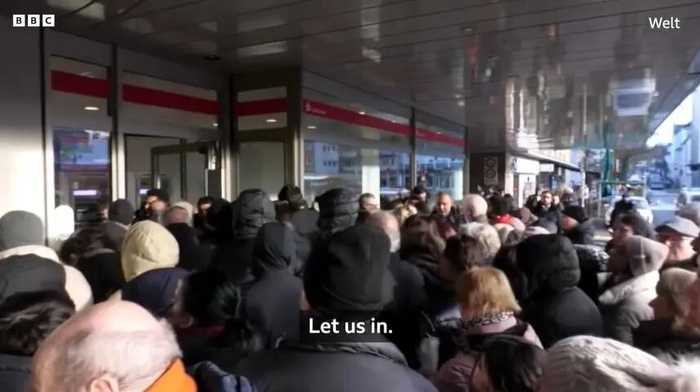 (客户堵在银行门口)