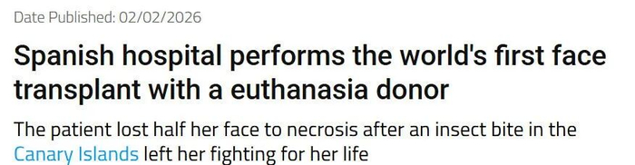 他们完成了世界首例利用安乐死捐赠者的脸进行的换脸手术,如今受捐者康复良好。