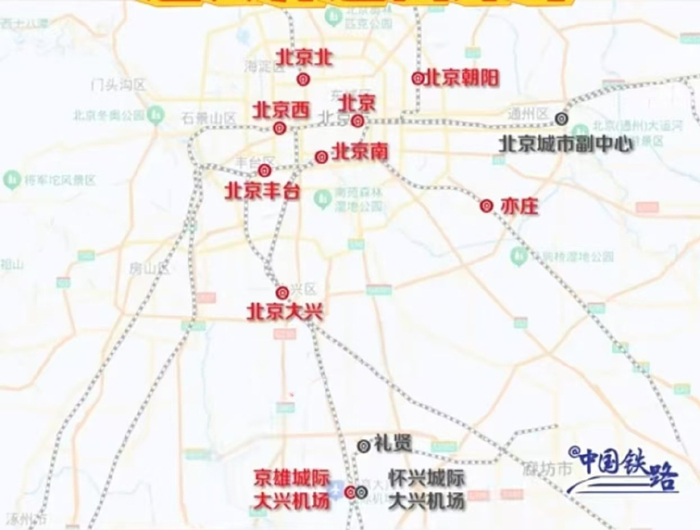 怀兴城际铁路起自怀柔区怀柔南站,终至大兴机场站,线路总长135.3千米,分两期建设。其中,一期工程由廊坊北站至大兴机场站,自2019年1月开工建设,共设廊坊北站、廊坊西站、礼贤站、怀兴城际大兴机场站4座车站。