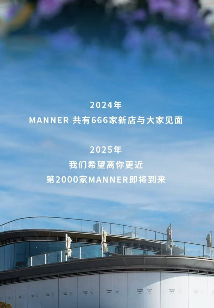 2024年12月31日,Manner发布总结称,2024年,Manner新开了666家门店,同时其透露,“第2000家Manner即将到来。”