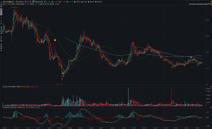 从2023年9月26日上市以来,途虎的股价经历了较大的波动。上市初期,其股价曾达到37.7港元。截至2025年4月23日,其收盘价为17.06港元,较上市初期高点下跌了约55%,市值蒸发约169亿港元。