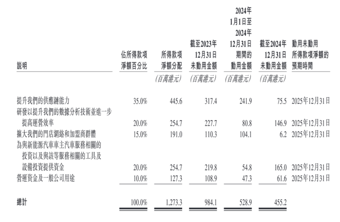 2024年内,途虎为与新能源汽车车主汽车服务相关的投资以及与该等服务相关的工具及设备投资共提供资金5480万港元。预计至2025年12月31日,途虎还要在该领域动用1.65亿港元资金。
