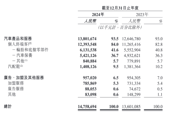 瑞财社注意到,途虎于2024年收入增长主要得益于其汽车产品和服务收入的提升,尤其是轮毂和底盘零部件及汽车维修业务的增长。2024年,途虎的轮胎和底盘零部件及汽车维修分部的收入同比增长10.2%至116亿元。