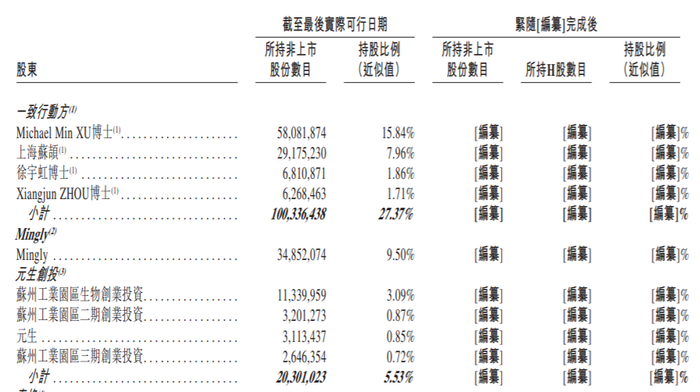 根据招股书披露,派格生物在上市前的股权架构中,MichaelMin XU博士,持股15.84%;雇员激励平台上海苏颉,持股7.96%。