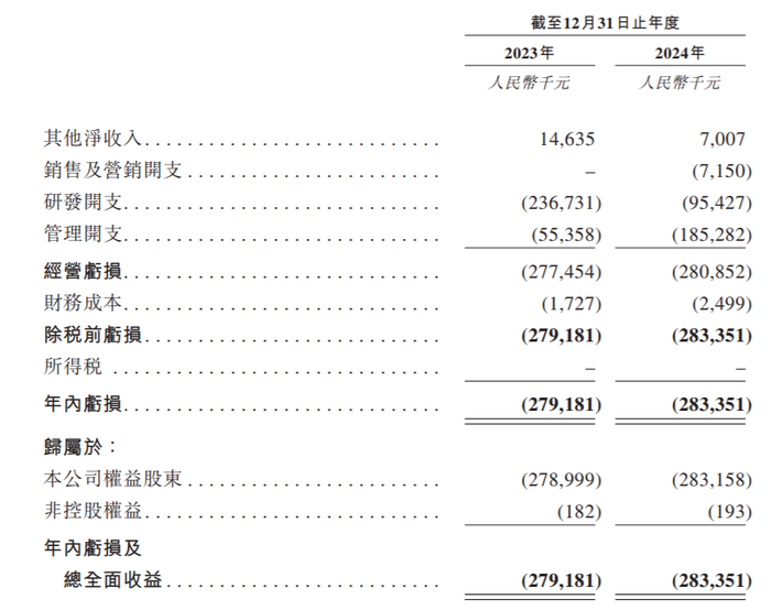 业绩方面,派格生物目前并无获准作商业销售用途的产品,也没有从产品销售中获得任何收入。2023年至2024年,派格生物的净亏损分别为2.79亿元及2.83亿元,亏损扩大。