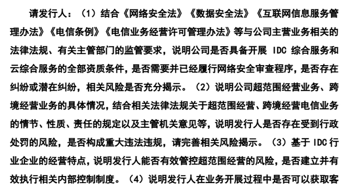 北交所要求尚航科技结合《网络安全法》《数据安全法》《互联网信息服务管理办法》《电信条例》《电信业务经营许可管理办法》等与公司主营业务相关的法律法规、有关主管部门的监管要求,说明公司是否具备开展IDC综合服务和云综合服务的全部资质条件,是否需要并已经履行网络安全审查程序,是否存在纠纷或潜在纠纷,相关风险是否充分揭示。