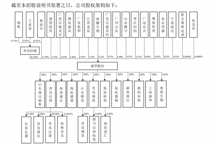 截至本招股说明书签署之日,康华股份实际控制人为杨致亭、王爱香和杨帆,三人合计控制公司90.07%的股份。杨致亭与王爱香系夫妻关系,与杨帆系父子关系。