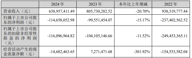 具体来看安奈儿2024年的业绩情况,总营业收入6.39亿元,同比减少20.7%;利润总额为-1.11亿元,同比减少19.81%;实现归母净利润-1.15亿元,同比减少15.17%。